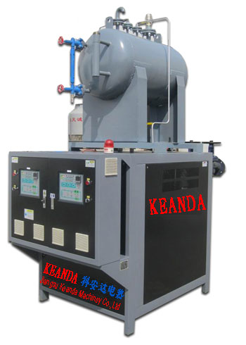 導(dǎo)熱油爐(又稱導(dǎo)熱油加熱器)是將是將電加熱器直接插入有機(jī)載體(導(dǎo)熱油)中直接加熱,利用循環(huán)泵,強(qiáng)制導(dǎo)熱油進(jìn)行液相循環(huán),將熱量傳遞給用一個(gè)或多種用熱設(shè)備,經(jīng)用熱設(shè)備卸載后,重新通過(guò)循環(huán)泵,回到加熱器,再吸收熱量,傳遞給用熱設(shè)備,如此周而復(fù)始,實(shí)現(xiàn)熱量的連續(xù)傳遞,使被加熱物體溫度升高,達(dá)到加熱的工藝要求。